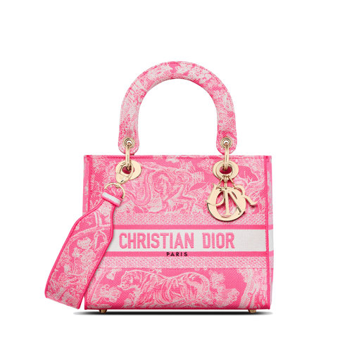 DIOR/迪奥 22新款LADY D-Lite系列 女士中号荧光粉织物茹伊印花刺绣手袋M0565OROC_M956