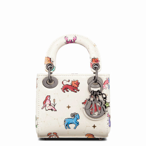 DIOR/迪奥 22新款Lady Dior系列 女士米白色小牛皮Zodiac Pixel星座图案印花可拆卸的肩带手提斜挎包S0856BNER_M941