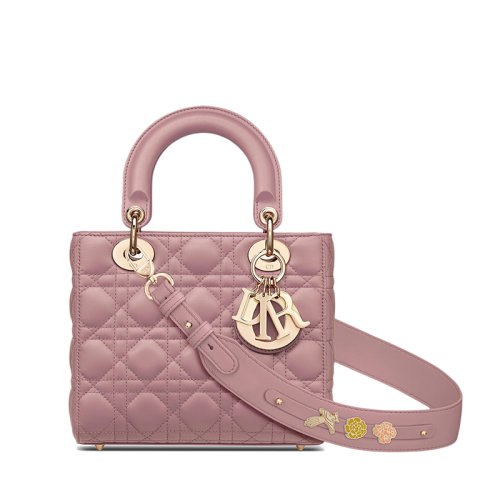 DIOR/迪奥 22新款LADY DIOR系列 女士小号复古粉色藤格纹羊皮革MY ABCDIOR单肩斜挎手提戴妃包(勋章款)M0538OCAL_M77P