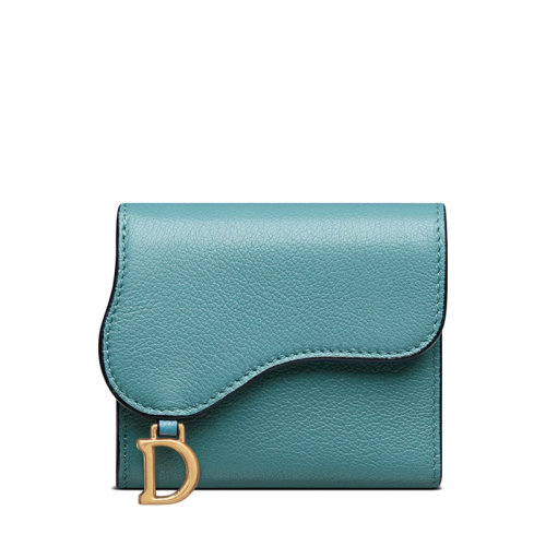 DIOR/迪奥 22春夏新款 女士天蓝色羊皮革马鞍LOTUS三折短款钱包S5652CCEH_M08Z