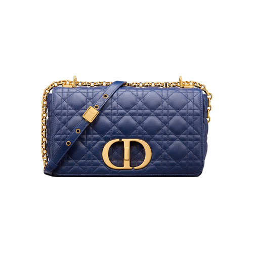 DIOR/迪奥 23新款 CARO系列 女士宝蓝色小牛皮CD字母纽扣翻盖封口金色调节拆卸链条手拿单肩斜挎包M9242UWHC_M14Z