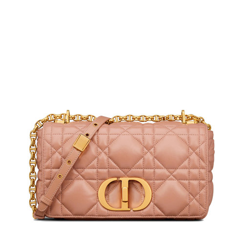 DIOR/迪奥 CARO系列 女士中号玫瑰粉色绗缝小牛皮CD扣斜挎单肩链条包M9242UNGK_M49P