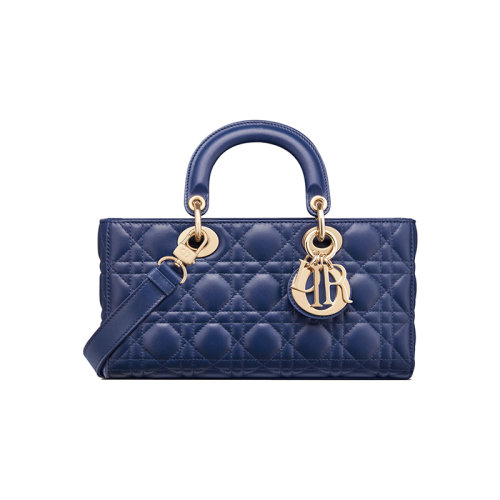 DIOR/迪奥 23新款 LADY D-JOY系列 女士宝蓝色格纹小羊皮淡金色金属吊饰拆卸链条肩带手提肩背斜挎包M0540ONGE_M14Z