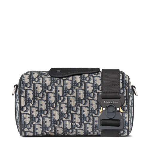 DIOR/迪奥 22春夏新款LINGOT 22系列 男士米色/黑色老花帆布配皮拉链开合斜跨单肩包1ADPO249YKY_H27E