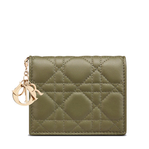DIOR/迪奥 LADY DIOR系列 女士迷你雪松绿色羊皮革藤格纹短款对折钱包S0178ONMJ_M67H