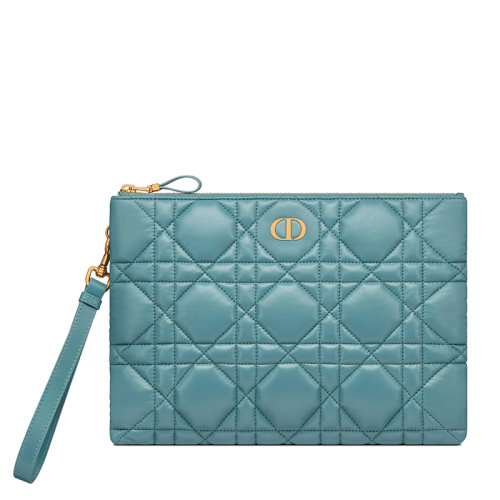 DIOR/迪奥 22秋冬新款Caro系列 女士天蓝色小牛皮绗缝金色扣可拆卸肩带优雅大号手拿包S5086UNGX_M08Z