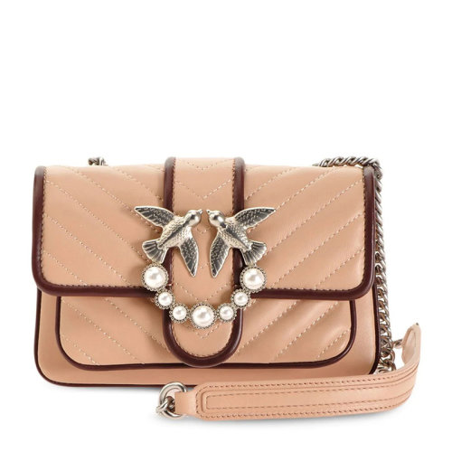 Pinko/品高女士纯色人字纹绗缝Saffiano皮革金色燕子徽标复古珠宝镶饰mini单肩包斜挎包链条包飞鸟包燕子包女包 1P2221 多色可选