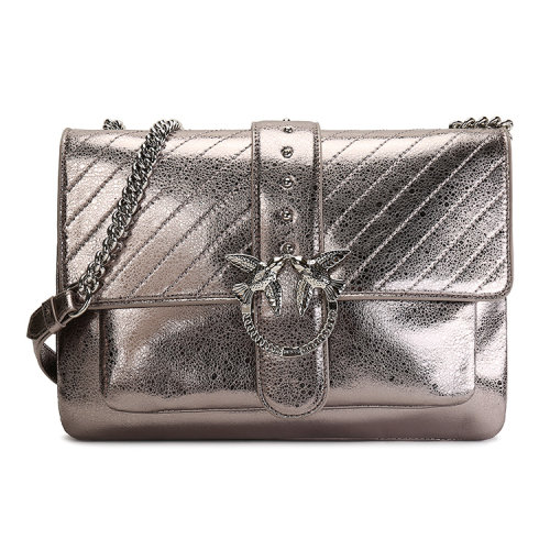 Pinko/品高 BAG LOVE系列 女士时尚单肩斜跨链条包 燕子包 丝绒珍饰装饰 灰色系