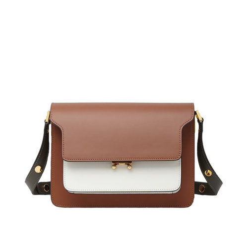 MARNI/玛尼 20 TRUNK系列 棕色白色双色拼接 小牛皮经典风琴包 斜挎单肩包 SBMPN09UC3LV583Z1Q24