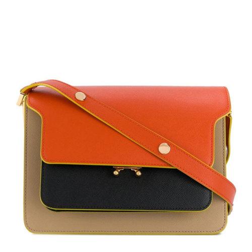 MARNI/玛尼 Trunk系列 女士拼色牛皮单肩包斜挎包风琴包