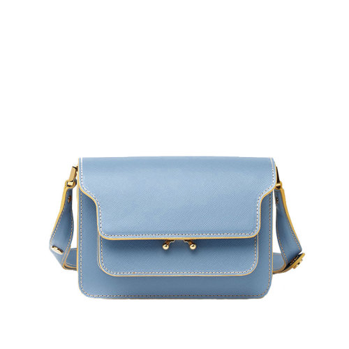MARNI/玛尼 20 TRUNK系列 天蓝色荔枝纹小牛皮风琴斜挎单肩包 SBMPS01U07LV520Z270Y