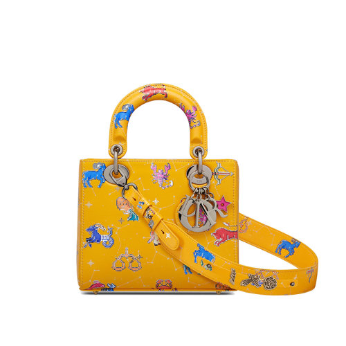 DIOR/迪奥 22新款LADY DIOR MY ABCDIOR系列 女士黄色小牛皮Dior Pixel Zodiac图案刺绣自定义勋章搭配单肩手提戴妃包(勋章款)M0538BNER_M930