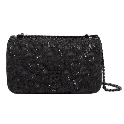 BURBERRY/博柏利 22新款 Lola系列 女士黑色Monogram亮片小羊皮翻盖磁扣开合调节肩带单肩斜挎包80591661