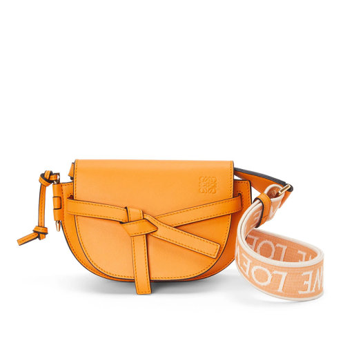 LOEWE/罗意威 22新款Gate Dual系列 女士迷你款橘色牛皮革提花织物肩带翻盖开合单肩斜挎包腰包A650N46X13-9130