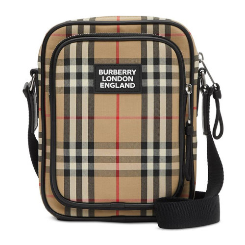 BURBERRY/博柏利 男士Vintage 格纹拼皮革斜挎包单肩包男包 8023381