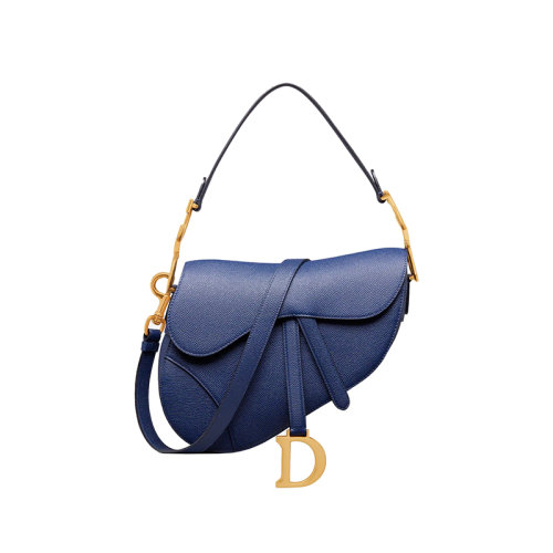 DIOR/迪奥 23新款 女士宝蓝色粒面小牛皮金色饰面马鞍形翻盖配拆卸调节肩带手提单肩斜挎马鞍包M0455CBAA_M14Z