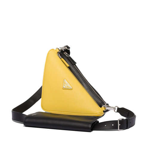 PRADA/普拉达 22新款 男士黑色阳光黄色Saffiano皮革珐琅金属三角形徽标单肩斜挎包2VH157_2FOQ_F0L8P_V_OLB