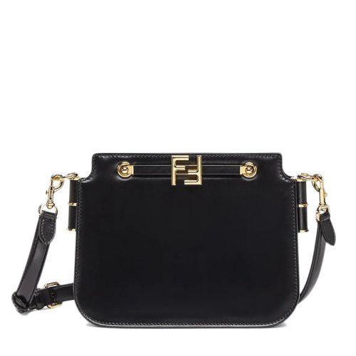 FENDI/芬迪 TOUCH系列 女士黑色小牛皮金色FF扣单肩斜挎包8BT349AHK2F0KUR