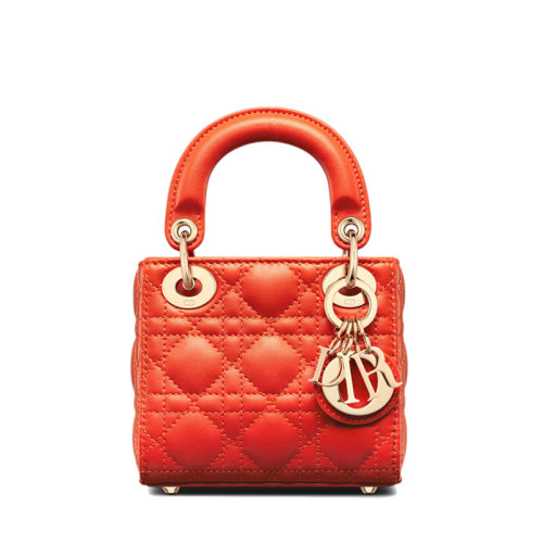 DIOR/迪奥 22春夏新款LADY DIOR系列 女士超迷你亮橙色藤格纹羊皮革单肩斜挎手提戴妃包S0856ONGE_M37O