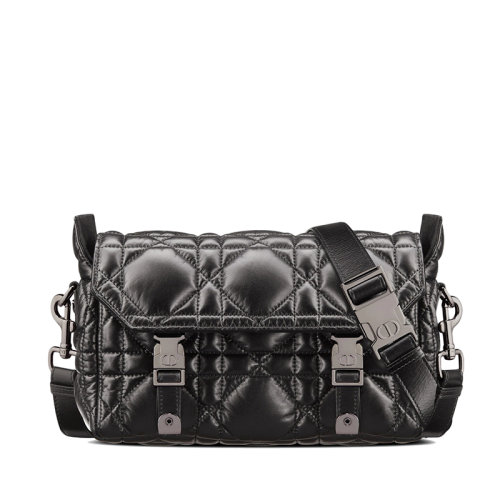 DIOR/迪奥 22新款DIORCAMP系列 女士小号黑色牛皮革超大藤格纹搭扣翻盖开合单肩斜挎信使包M1243BMIG_M900