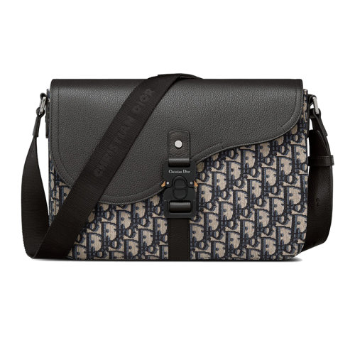 DIOR/迪奥 22新款 男士米色/黑色老花帆布配黑色粒面小牛皮调节皮革肩带铝扣翻盖开合单肩斜挎马鞍邮差包1ADME162YKS_H27E