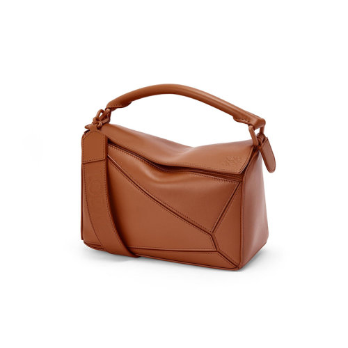 LOEWE/罗意威 22年新款 Puzzle系列 女士小号山核桃色缎面小牛皮单肩斜挎手提拼图包A510S21X88-3627