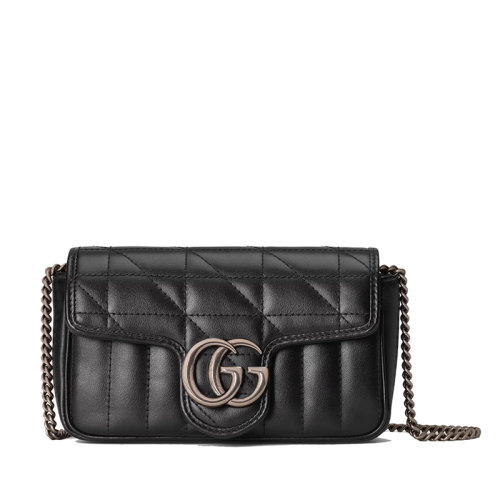 GUCCI/古驰 GG Marmont系列 女士超迷你黑色绗缝皮革复古银饰双G单肩斜挎链条包476433DTD5N1000