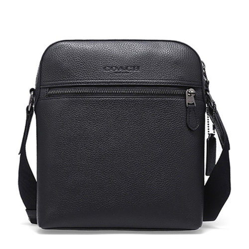 COACH/蔻驰男士黑色粒面牛皮经典字母徽标压花拉链开合单肩包斜挎包邮差包信使包男包 F4011QBBK