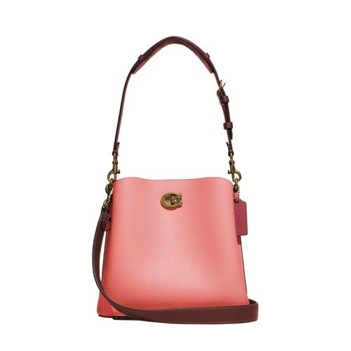 COACH 蔻驰 女士专柜款皮革WILLOW手提单肩包托特包亮粉色 C3766 B4S5K