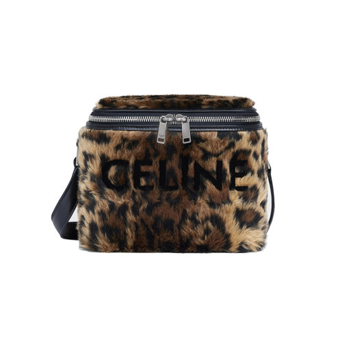 CELINE/赛琳 22新款 男士自然色/黑色织物配小牛皮人造豹皮毛效果双拉链开合调节肩带单价斜挎包110592EKI.02NC