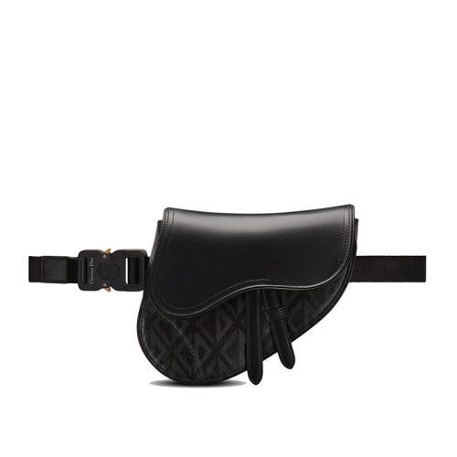 DIOR/迪奥 22春夏新款SADDLE系列 男士迷你黑色CD Diamond图案帆布光滑牛皮革翻盖单肩斜挎腰包马鞍包1ADPO022CDP_H43E