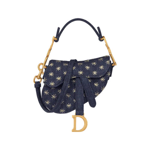 DIOR/迪奥 23新款 女士蓝色牛仔布金色星星刺绣马鞍形翻盖开合拆卸调节肩带单肩手提斜挎马鞍包S5685CDNB_M49E