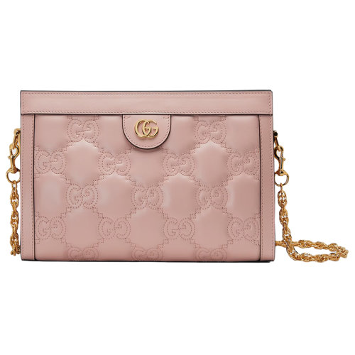GUCCI/古驰 22新款 女士小号粉色GG绗缝皮革金色饰面双G金色链式肩带单肩斜挎包702200UM8HG5941