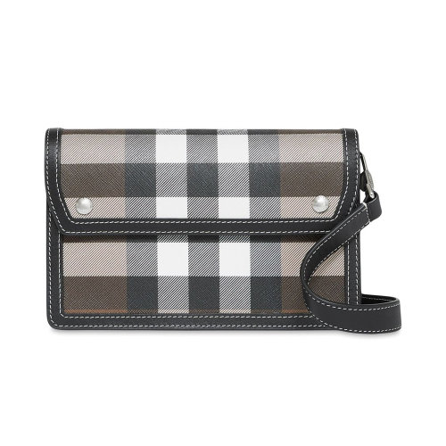 BURBERRY/博柏利 男女同款中性米色帆布配皮经典格纹装饰单肩包斜挎包 8039213