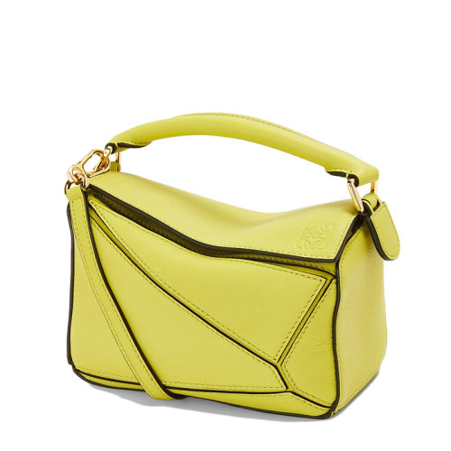 LOEWE/罗意威 22春夏新款Puzzle系列 女士迷你柠檬黄色小牛皮斜挎单肩手提拼图包0010640514