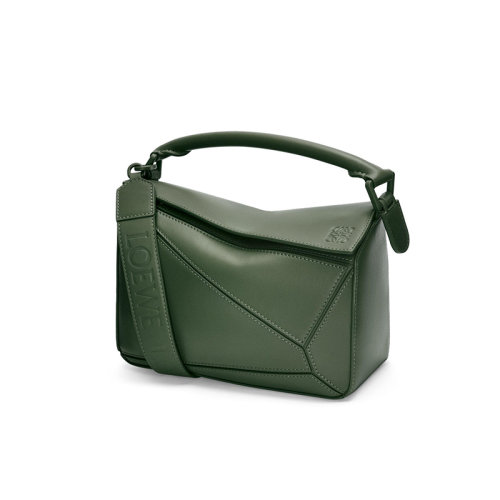 LOEWE/罗意威 22年新款 Puzzle系列 女士小号复古卡其色缎面小牛皮单肩斜挎手提拼图包A510S21X88-1869