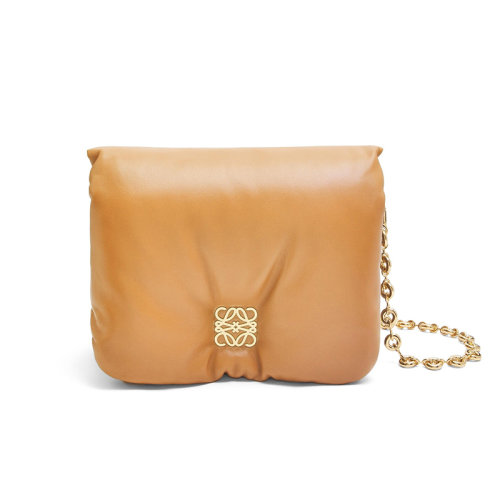 LOEWE/罗意威 22秋冬新款 Puffer Goya系列 女士驼色纳帕小羊皮鹅毛填充磁扣拆卸金色甜甜圈形状链条手提斜挎单肩包AP40P41X01-3150