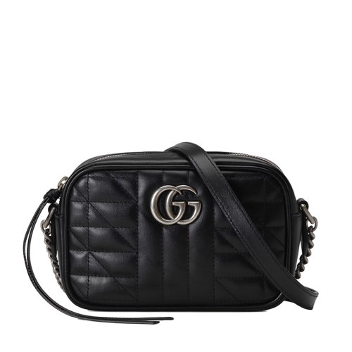 GUCCI/古驰 GG Marmont系列 女士迷你黑色绗缝皮革复古银色饰面双G单肩斜挎包??634936UM8BN1000