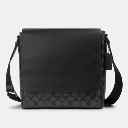 COACH蔻驰 男士奥莱 HOUSTON系列 经典老花C字中号单肩斜挎包黑色PVC配皮 573 QBMI5 炭黑色