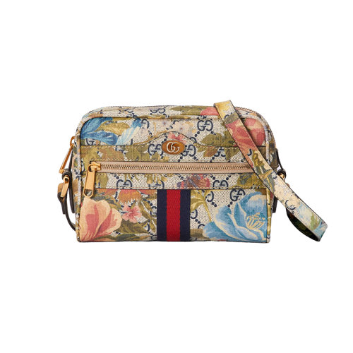 GUCCI/古驰 23春夏新款 Ophidia GG Flora系列 女士迷你彩色帆布花卉图案拉链开合金色饰面单肩斜挎包517350FABAI4073