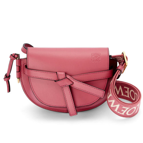 LOEWE/罗意威 22新款Gate Dual系列 女士迷你款梅花色小牛皮提花织物肩带翻盖开合单肩斜挎包A650N46X13-2823