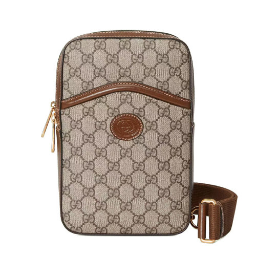 GUCCI/古驰 22新款 男士米色/乌木色老花帆布配皮金扣拉链开合单肩斜跨包69601692THG8563