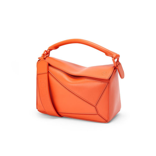 LOEWE/罗意威 22年新款 Puzzle系列 女士小号橙色缎面小牛皮单肩斜挎手提拼图包A510S21X88-9100