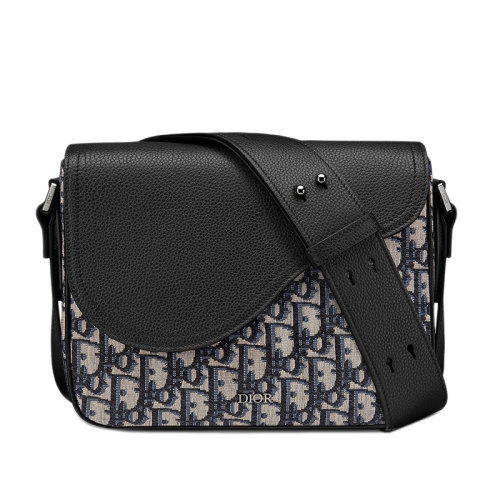 DIOR/迪奥 BESACE SADDLE系列 男士迷你米色黑色Oblique提花帆布黑色粒面小牛皮单肩斜挎马鞍包1ADME130YKS_H27E