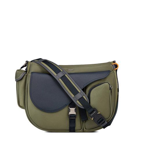 DIOR/迪奥 SADDLE系列 SACAI联名男士橄榄色科技面料和粒面小牛皮单肩斜挎马鞍包1ADHO029USH_H15E