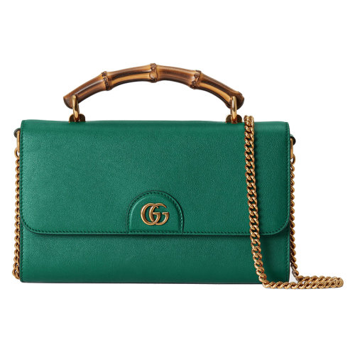Gucci/古驰 预售款 22新款 Diana系列 女士翠绿色皮革金色双g竹节手柄链式肩带手提单肩斜挎包67579417Q0T3120