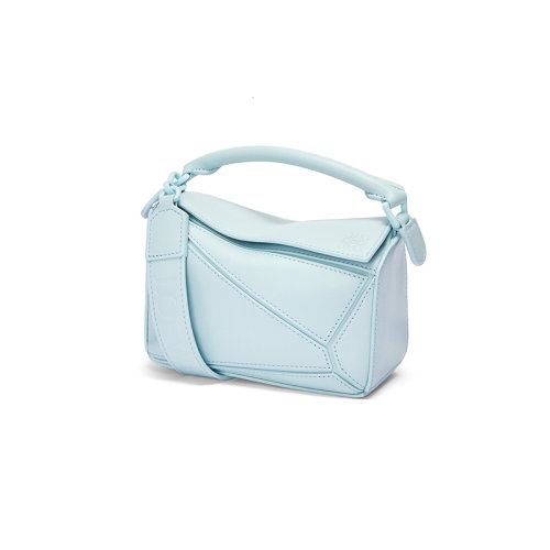 LOEWE/罗意威 22年新款 Puzzle系列 女士mini海蓝宝石色缎面小牛皮单肩斜挎手提拼图包A510U95X58-9514