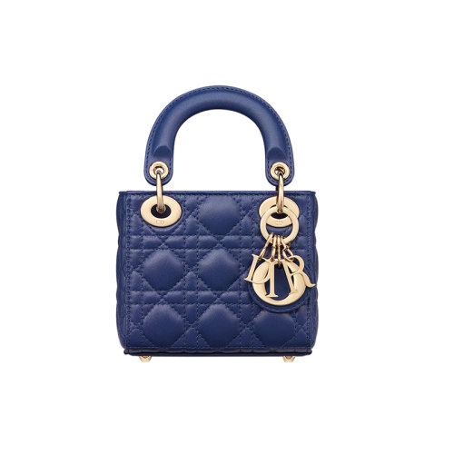 DIOR/迪奥 23新款 LADY系列 女士宝蓝色格纹小羊皮淡金色金属吊饰调节拆卸肩带单肩斜挎手提包S0856ONGE_M14Z