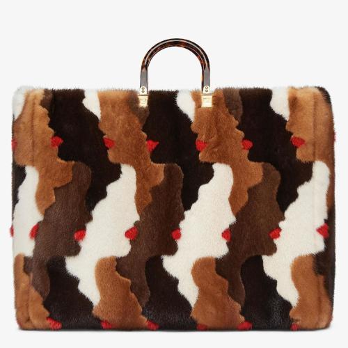 FENDI芬迪 22年秋冬 女士 手提包 棕色镶饰貂皮手提袋 8BH372AJHNF0WHQ