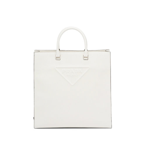 PRADA/普拉达 22年新款 男士白色皮革压花徽标提手可拆卸刺绣织带肩带托特包2VG084_2FAD_F0009_V_DOO